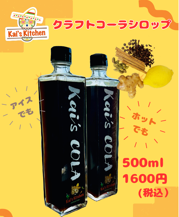 カイズキッチンオリジナルレシピのクラフトコーラ、「Kai’s Cola」です。